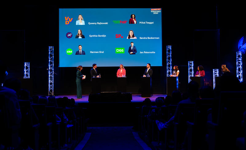 Onder leiding van Marte Schuurmans gingen zes kandidaat-Kamerleden – Jan Paternotte (D66), Sandra Beckerman (SP), Queeny-Aimée Rajkowski (VVD), Harmen Krul (CDA), Cynthia Gordijn (JA21) en Mikal Tseggai (GroenLinks-PvdA) – met elkaar en met studenten in gesprek. Hun aanwezigheid gaf het debat politiek gewicht. Ze gingen serieus in op actuele thema’s die studenten direct raken: van de basisbeurs en studentenhuisvesting tot stagevergoedingen en gelijke kansen.