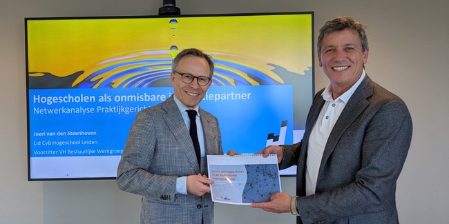 Foto boven: Maurice Limmen, voorzitter Vereniging Hogescholen overhandigt de Birch-netwerkanalyse aan Jacco Vonhof, voorzitter MKB-Nederland, 20 april 2026